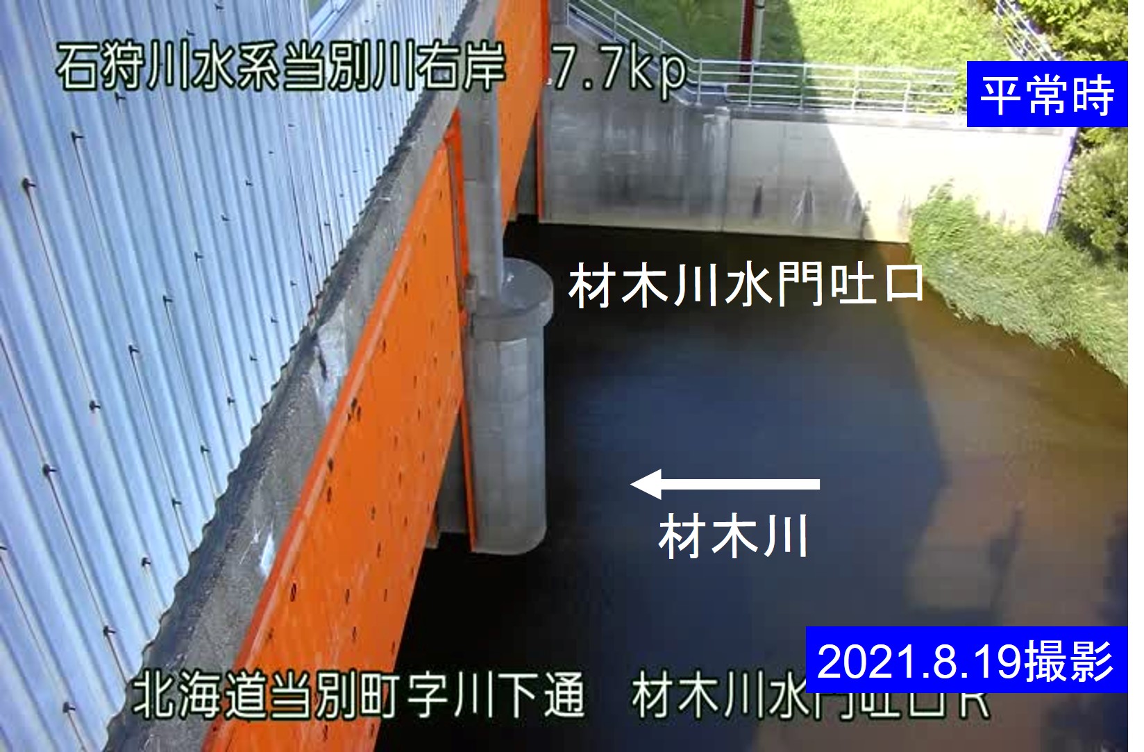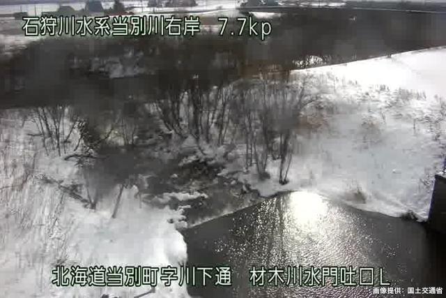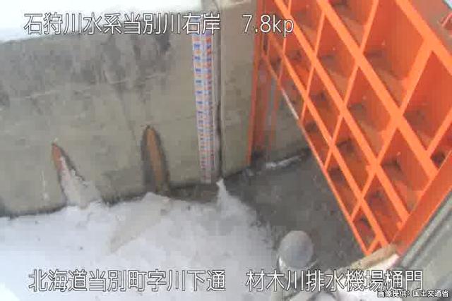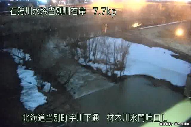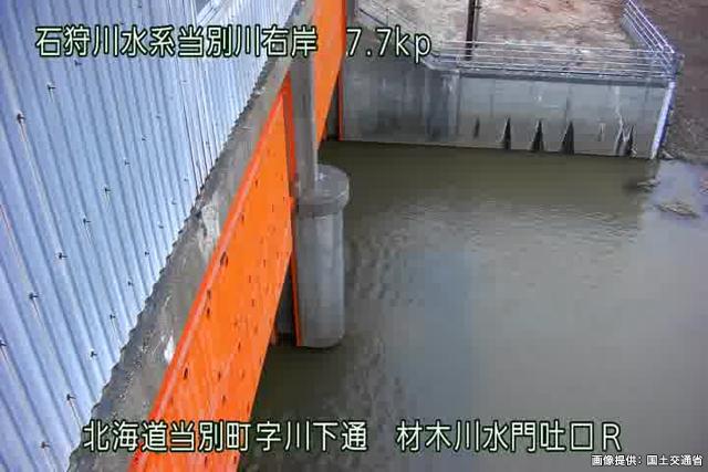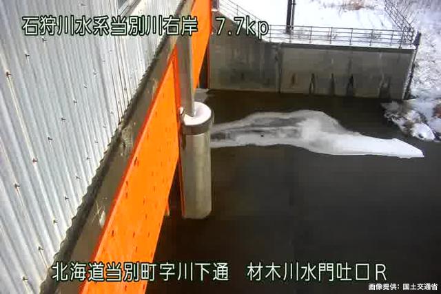 当別川 7.7kp 材木川水門吐口R周辺の河川ライブカメラ