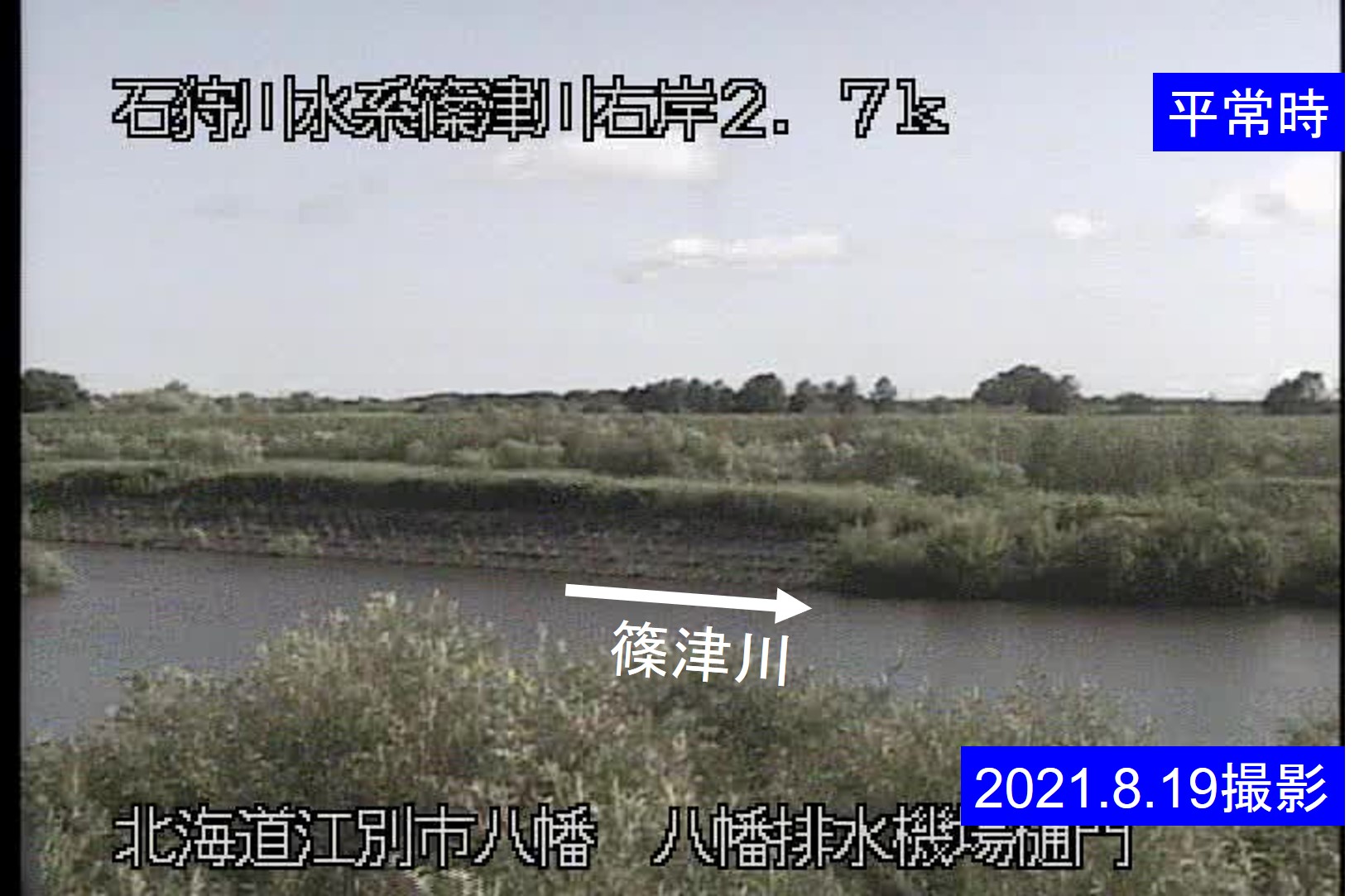 篠津川 2.7kp 八幡排水機場 樋門周辺の河川ライブカメラ