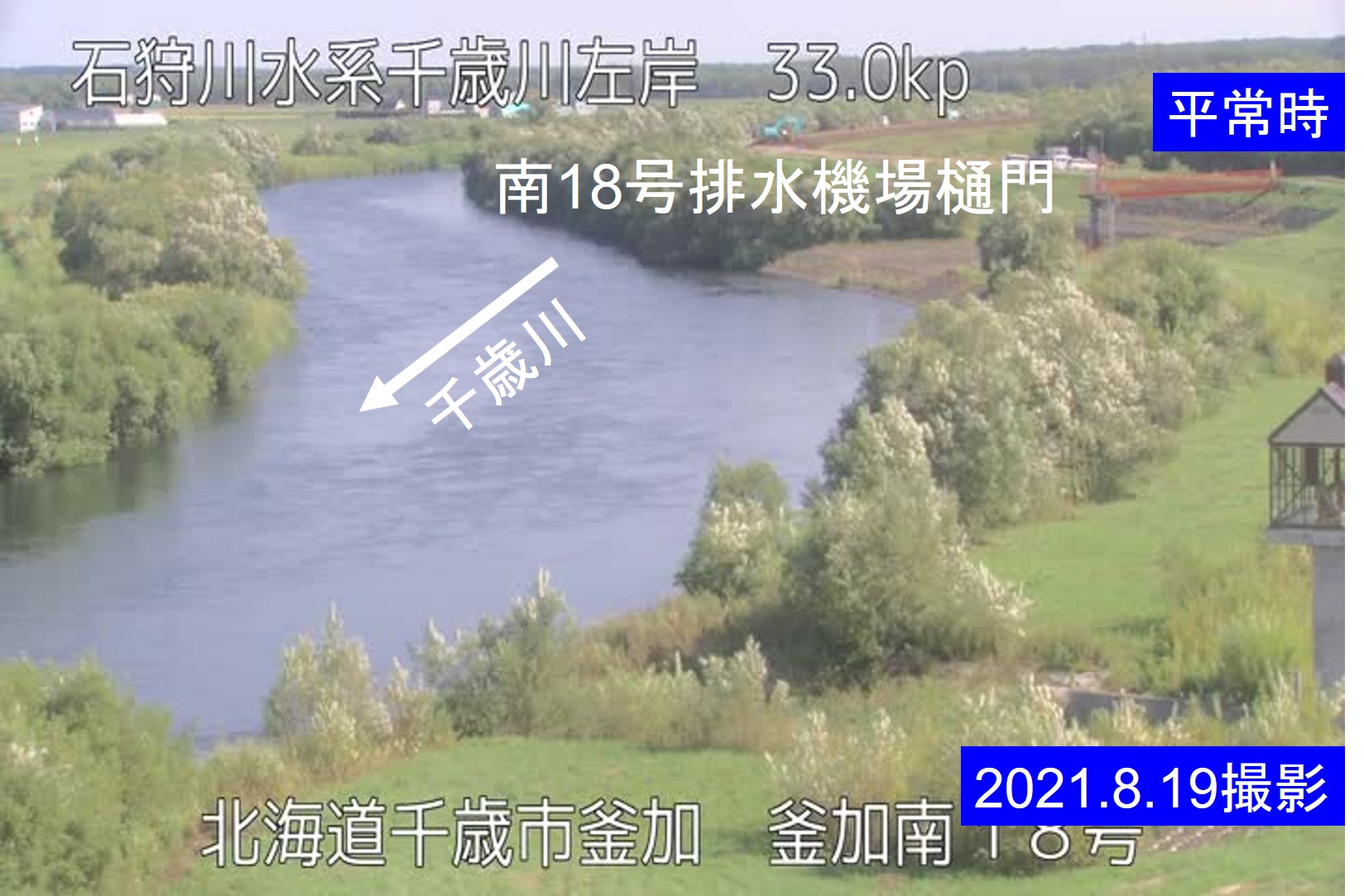 千歳川 33.0kp 釜加南18号周辺の河川ライブカメラ