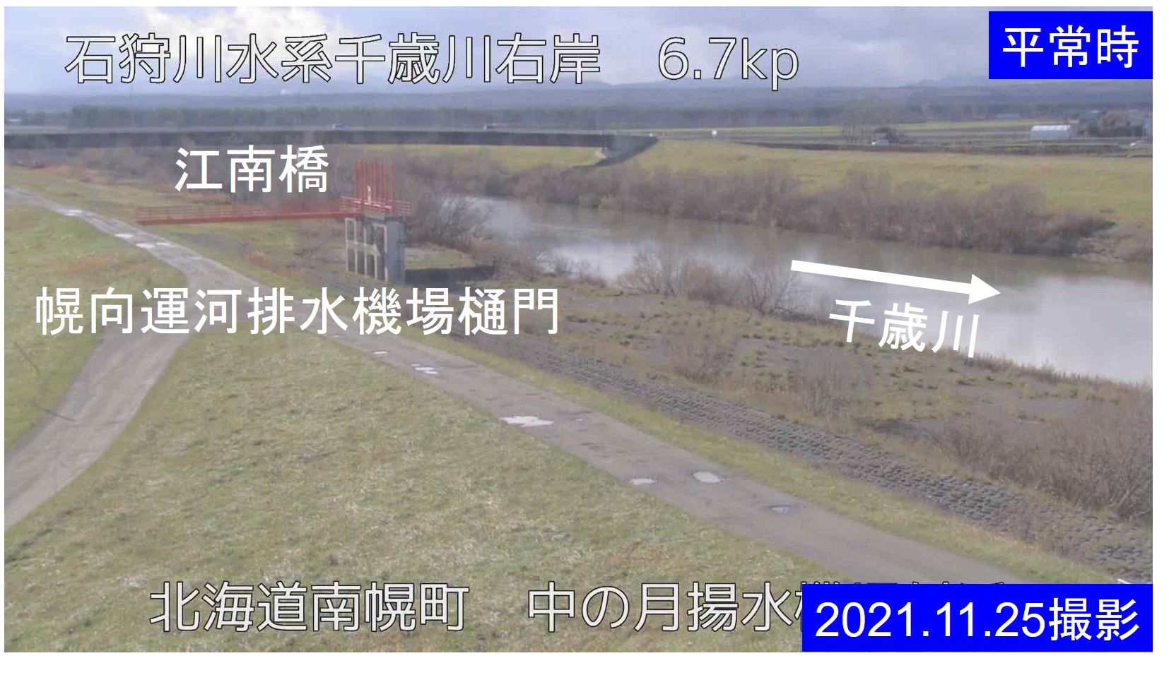 千歳川 6.7kp 中の月揚水機場付近周辺の河川ライブカメラ