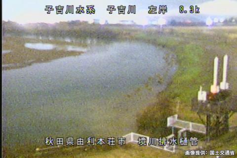 子吉川梵天谷地排水樋管周辺の河川ライブカメラ