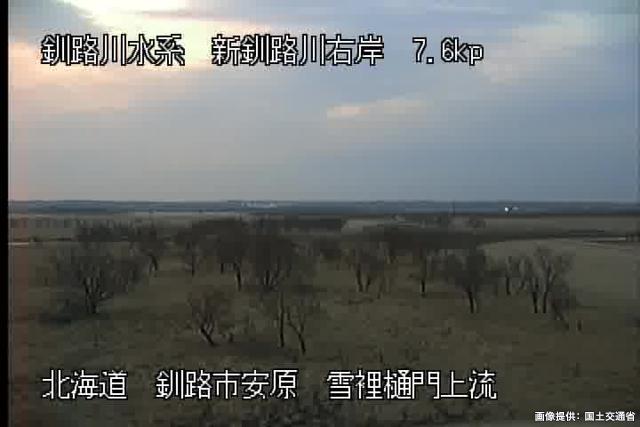 新釧路川 7.6kp 雪裡樋門上流周辺の河川ライブカメラ