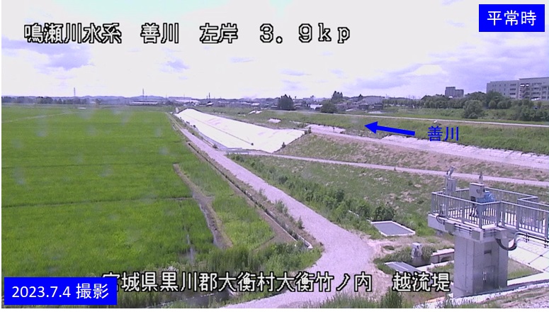 善川遊水地越流提左岸3.9km周辺の河川ライブカメラ