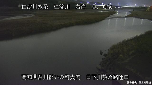 仁淀川 右 9k0いの町 日下川放水路吐口周辺の河川ライブカメラ