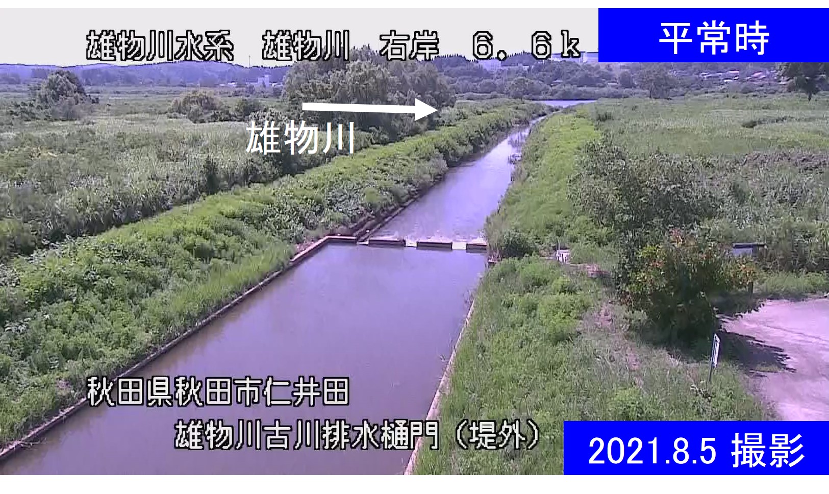 雄物川古川排水樋門堤外側周辺の河川ライブカメラ