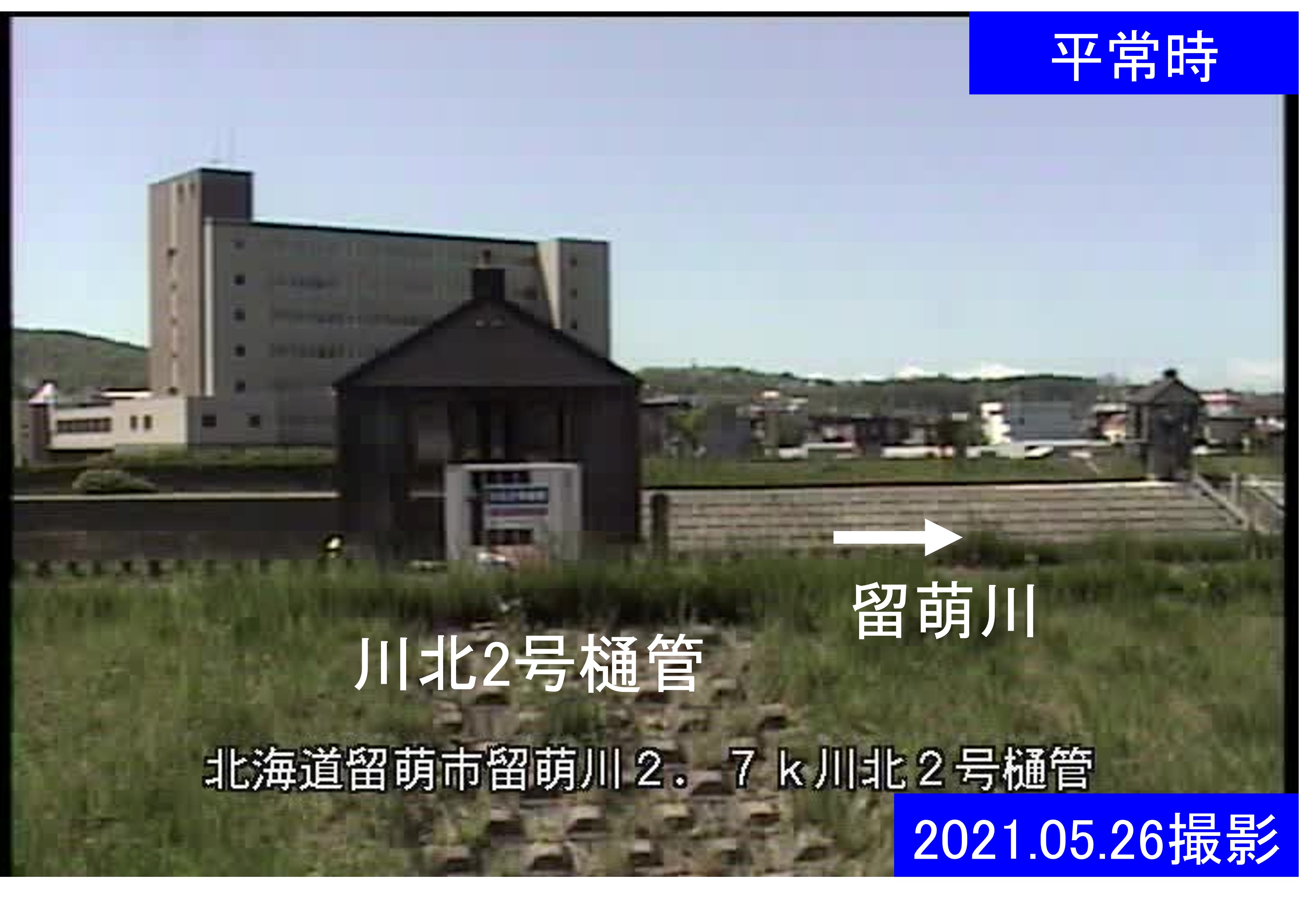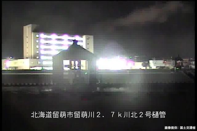留萌川 2.7kp 川北2号樋管周辺の河川ライブカメラ