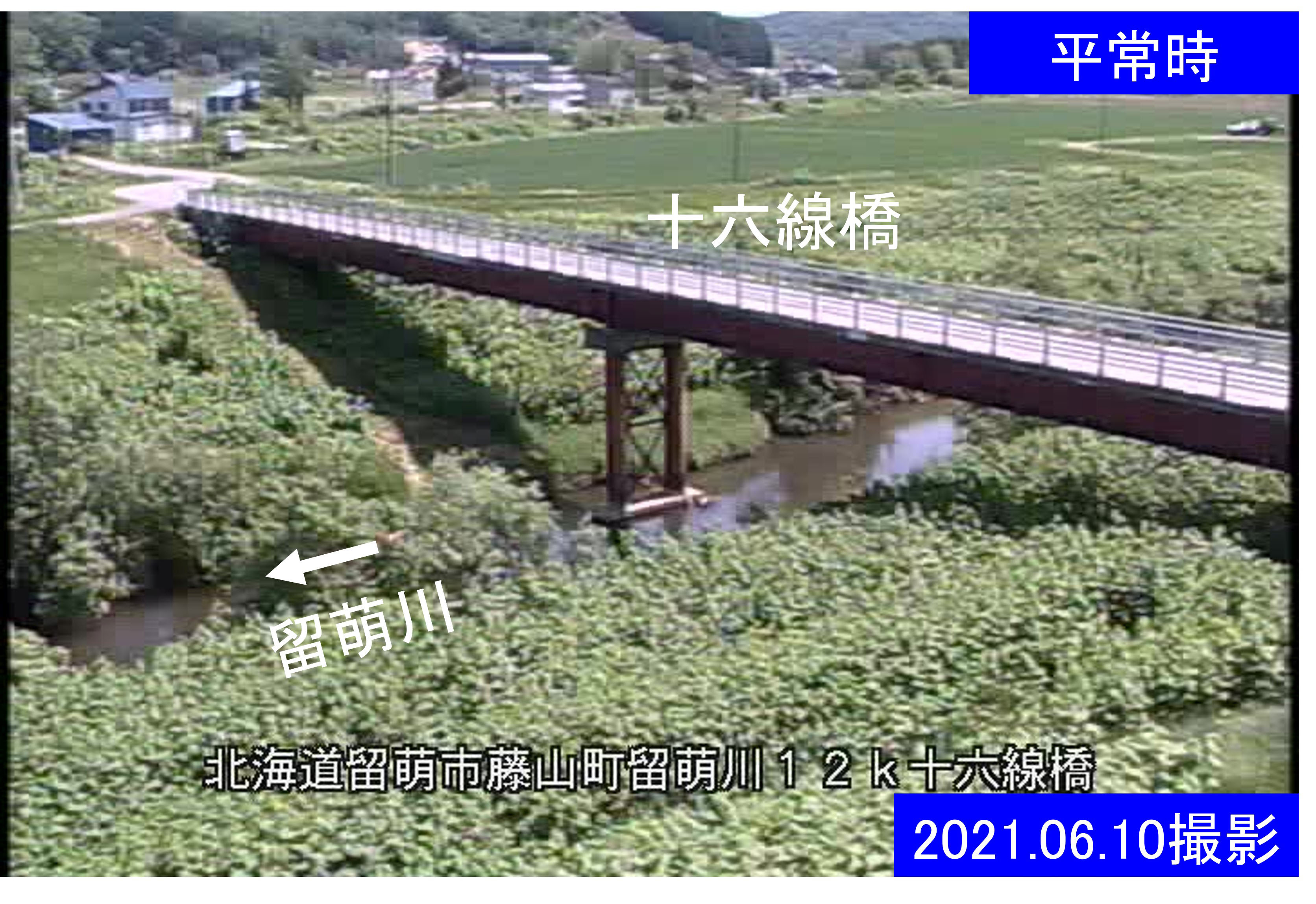 留萌川 12kp 十六線橋水質観測所周辺の河川ライブカメラ