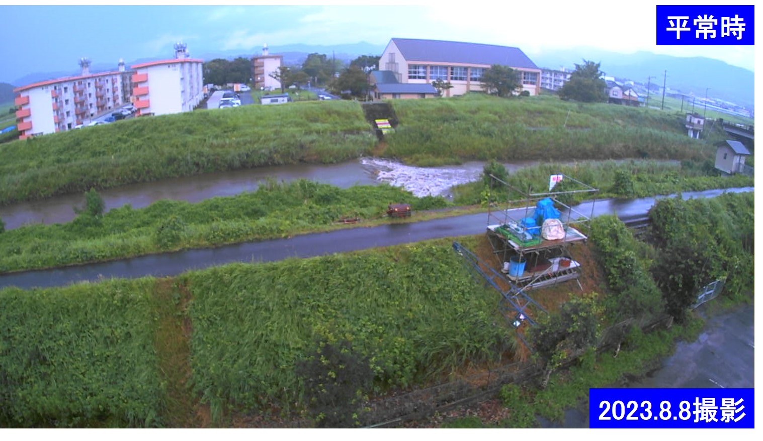 長江川1k400付近(えびの市役所庁舎)周辺の河川ライブカメラ