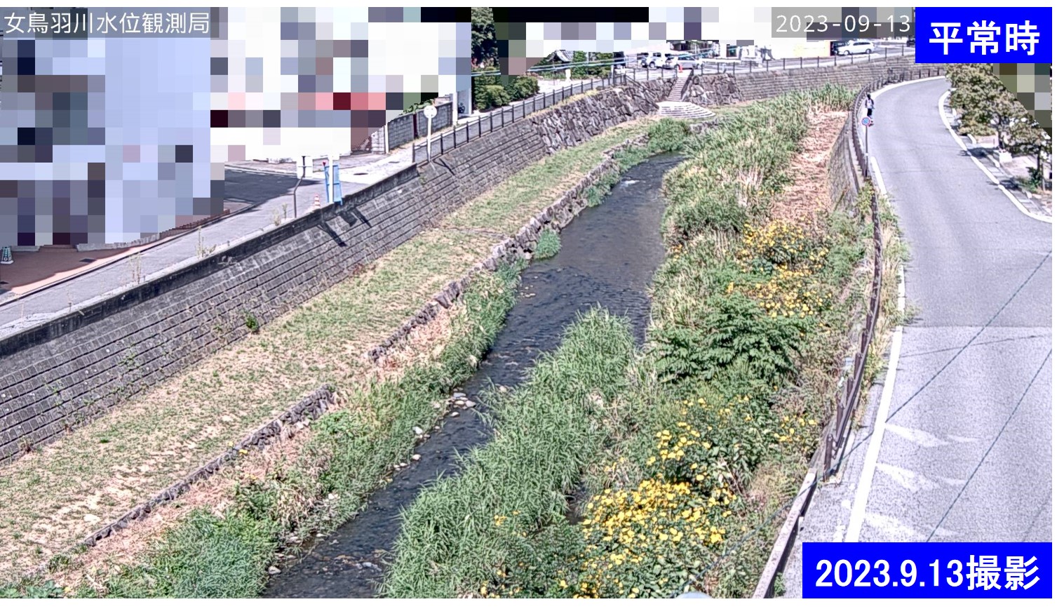 女鳥羽川水位観測局周辺の河川ライブカメラ
