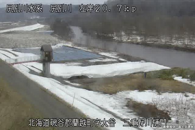 尻別川 20.7kp左岸 三重野川樋門周辺の河川ライブカメラ