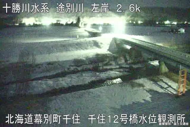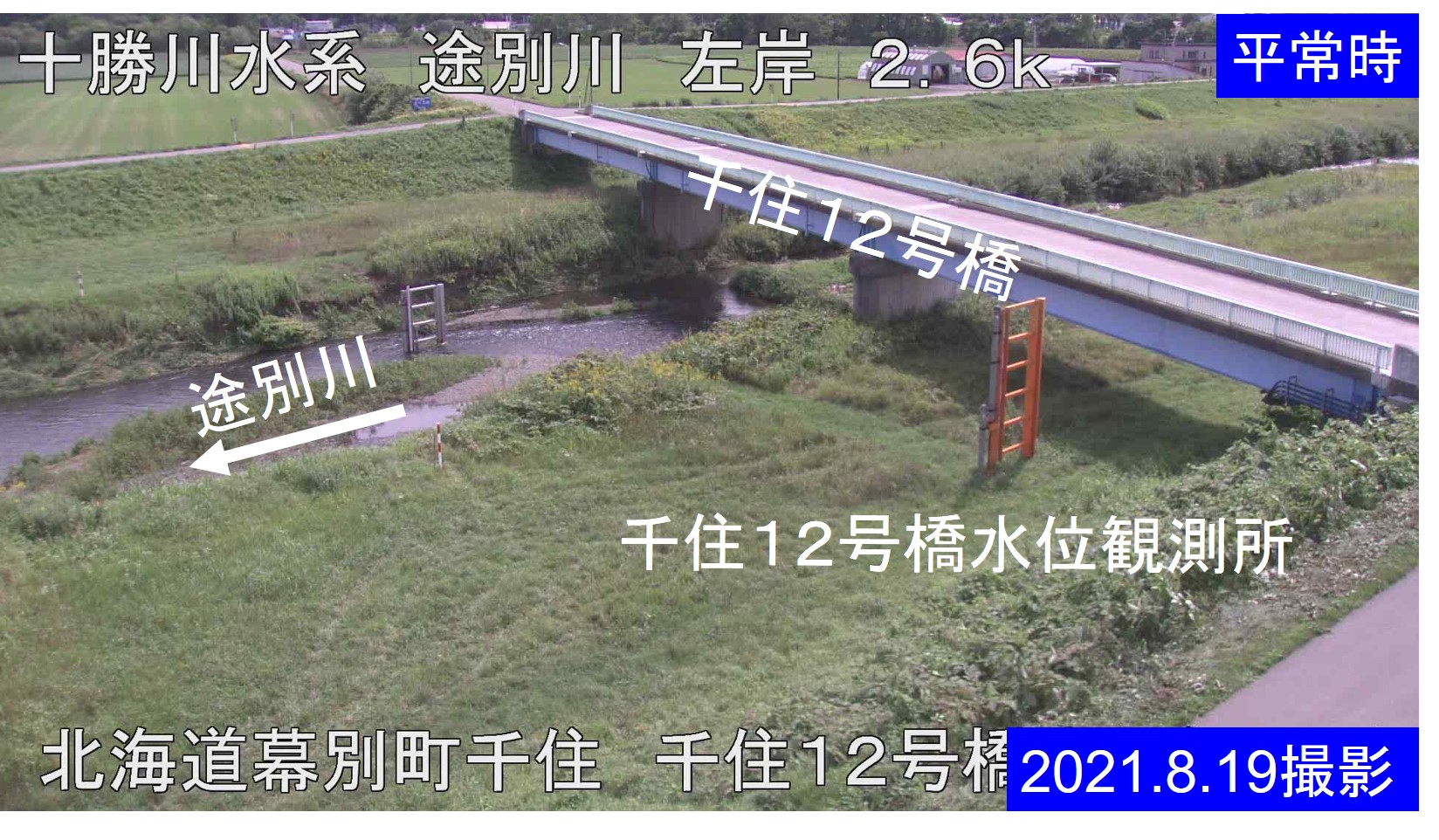 途別川 2.6kp 千住12号橋水位観測所周辺の河川ライブカメラ