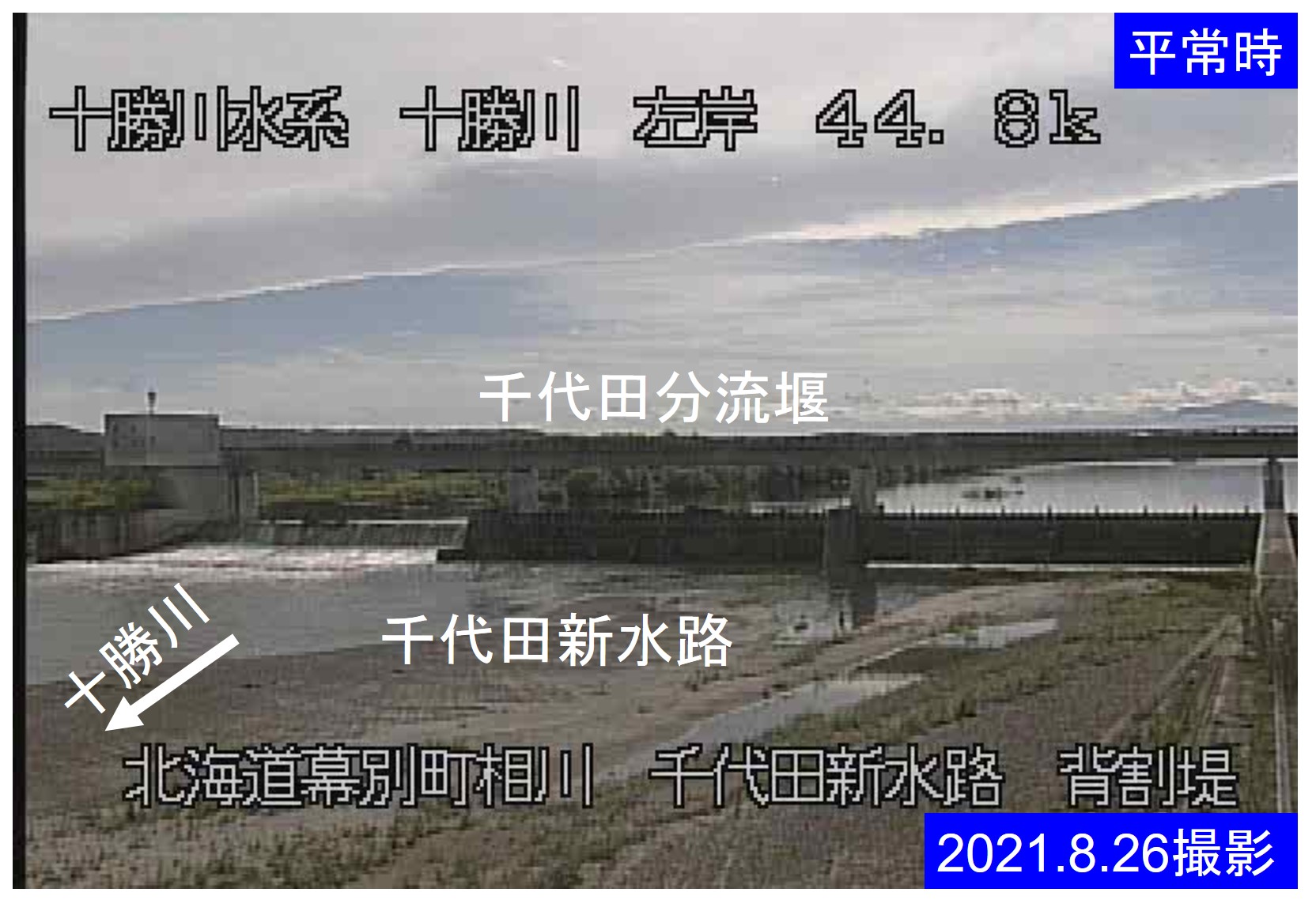 十勝川 44.8kp 千代田新水路 背割堤周辺の河川ライブカメラ