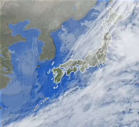 日本付近を通過する雲は前線に伴う雲。雨雲を含み、パラパラ、サーッと雨を降らせます。白くハッキリと映る雲は活発な雨雲です。ザーッと強まって雷を伴うおそれもあるのでご注意ください。