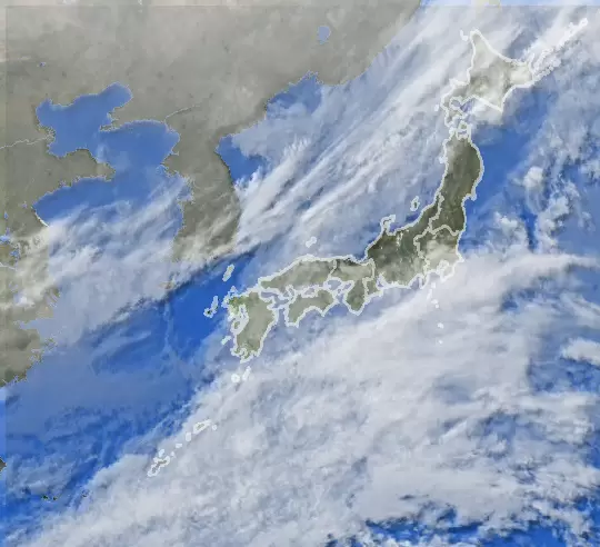日本付近を東に進む雲は低気圧と前線による雲です。広く雨を降らせましたが、段々と東の海上に抜けつつあります。一方、この雲の西側(日本海)では寒気の影響や風がぶつかることで雲が発生しています。この雲が陸地に入ってくると雨や雪を降らせます。