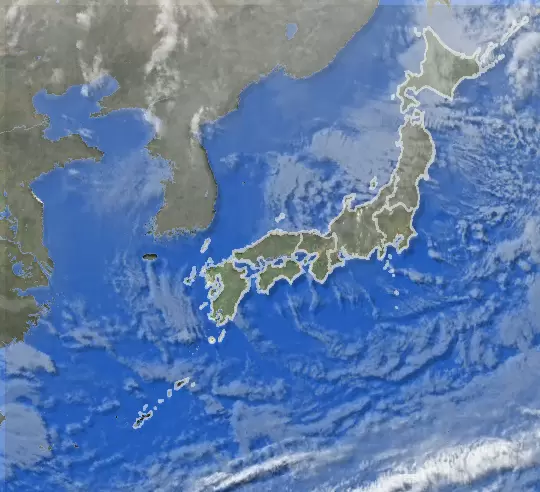 日本海には筋状の雲が広がっています。大陸から雲までの距離が近いほど寒気が強く、長いほど弱いことが示されます。段々と強い寒気が後退しているため、離岸距離が長くなっていきます。