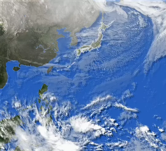 日本海から寒気や風の衝突による雲が流れ込んでいます。一部に雨雲や雪雲が含まれており、日本海側を中心に雨や雪の降っているところがあります。