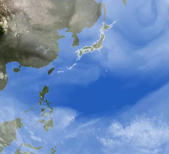 本州付近に映る雲は寒気や風の衝突に伴う雲。日本海側を中心に雨や雪を降らせています。南西諸島では高気圧周辺の湿った空気に伴う雲が発生していますが、天気を大きく崩す雲ではありません。