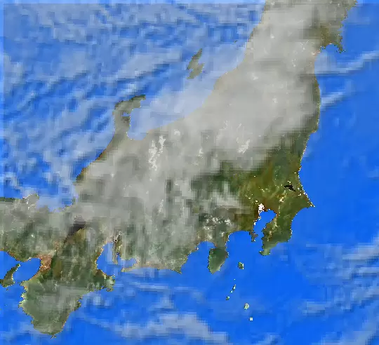 日本海側には寒気や風の衝突、低気圧による雲が見られます。北陸を中心に雪や雨が降っており、白く発達した雲の下では雷やアラレ、突風にも注意が必要です。一方、太平洋側は晴れているところが多くなっています。