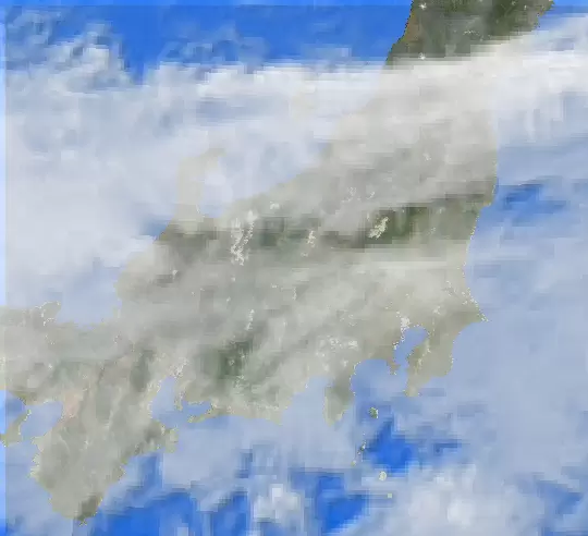 東日本を通過する雲は前線による雲。あまり活動は活発ではないものの、雨の降っている所があります。