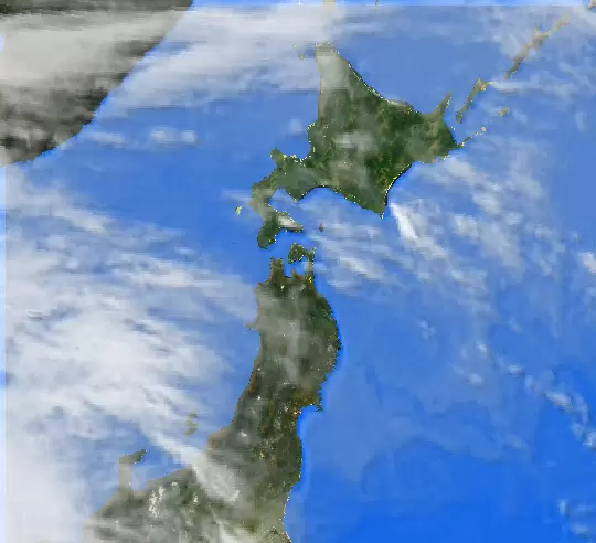 東北は高気圧圏内で晴れています。一方、北海道に見える雲は天気図には描かれない前線の雲。一部に雨雲を含み、雨を降らせることがあります。