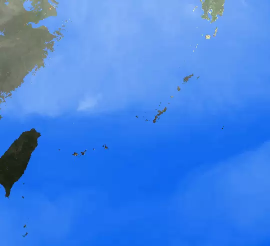 南西諸島付近を通過する雲は前線や湿った空気による雲。一部に雨雲が含まれているため、急な雨に注意が必要です。