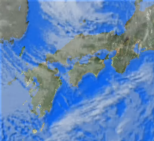 低気圧や前線に伴う雲が通過していて、雨の降りやすい天気となっています。白くハッキリと映る雲の周辺では強雨のおそれがあり、雷を伴う可能性もあるため注意が必要です。