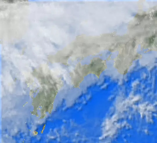 西日本を通過する雲は前線による雲。一部に雨雲が含まれているため、日本海側や東シナ海側を中心に雨を降らせる可能性があります。