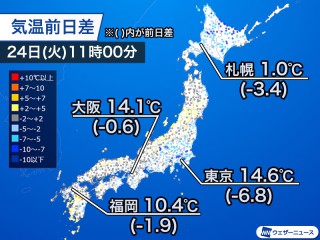 気温が低いため洗濯物の乾きが非常に遅く、凍結のリスクもあります。外干しは難しい予想です。