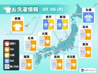 気温が低いため洗濯物の乾きが非常に遅く、凍結のリスクもあります。外干しは難しい予想です。