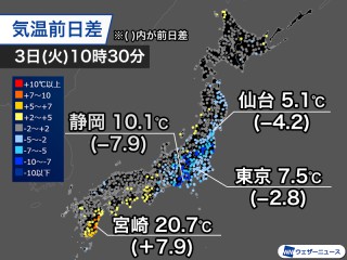 - 3℃[+1]