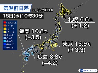 天気痛の発症リスクがやや高く、敏感な方は軽い症状を感じる可能性があります。
