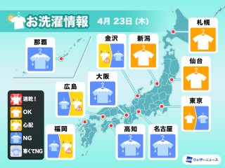 気温が低いため洗濯物の乾きが非常に遅く、凍結のリスクもあります。外干しは難しい予想です。