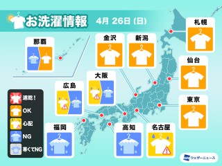 気温が低いため洗濯物の乾きが非常に遅く、凍結のリスクもあります。外干しは難しい予想です。