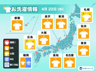 気温が低いため洗濯物の乾きが非常に遅く、凍結のリスクもあります。外干しは難しい予想です。
