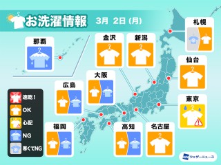 気温が低いため洗濯物の乾きが非常に遅く、凍結のリスクもあります。外干しは難しい予想です。