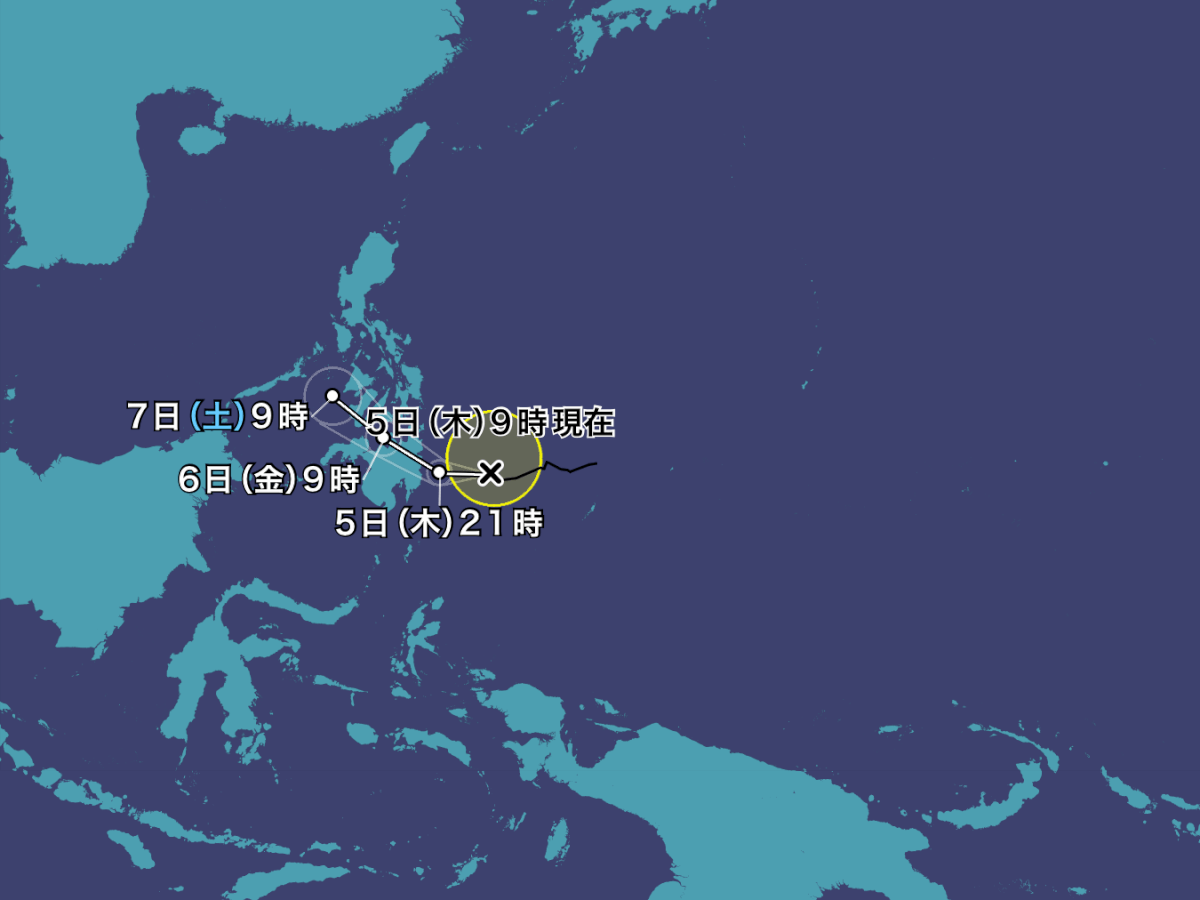 台風2号(ペンニャ)はミンダナオ島の東にあって、西南西に進んでいます。西寄りに進んでフィリピンのミンダナオ島付近に接近・上陸し、その後はフィリピンを通過しながら勢力を落とす予想となっています。フィリピンでは強風や高波、強まる雨に注意が必要です。