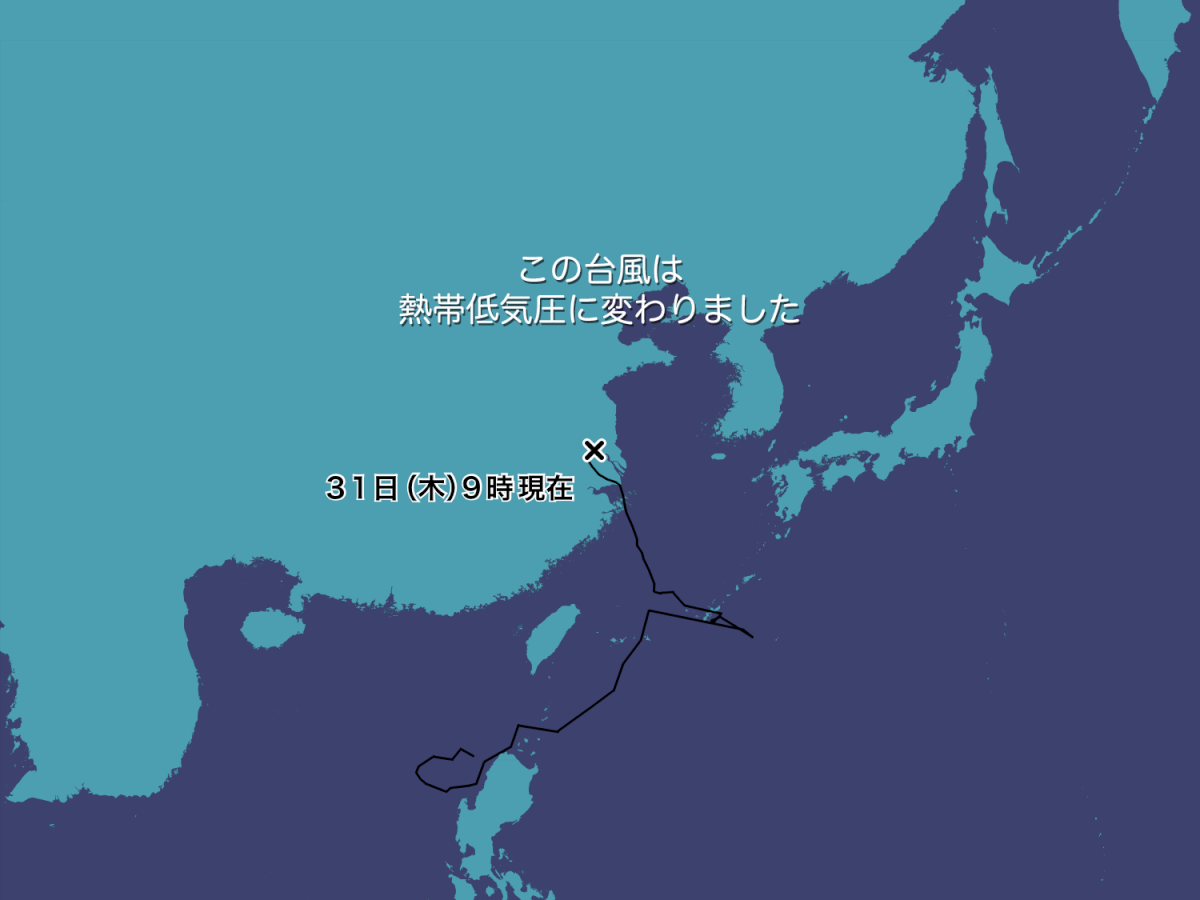台風8号(コメイ)は、7月31日(木)9時に熱帯低気圧に変わりました。※「コメイ(Co-may)」はベトナムが提案した名称で「草の名前」を意味する単語です。