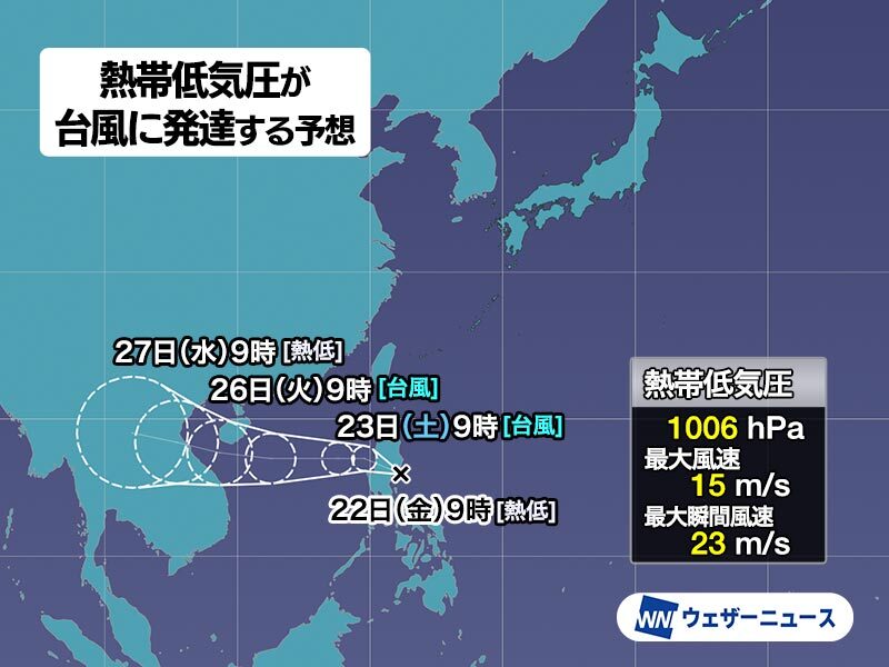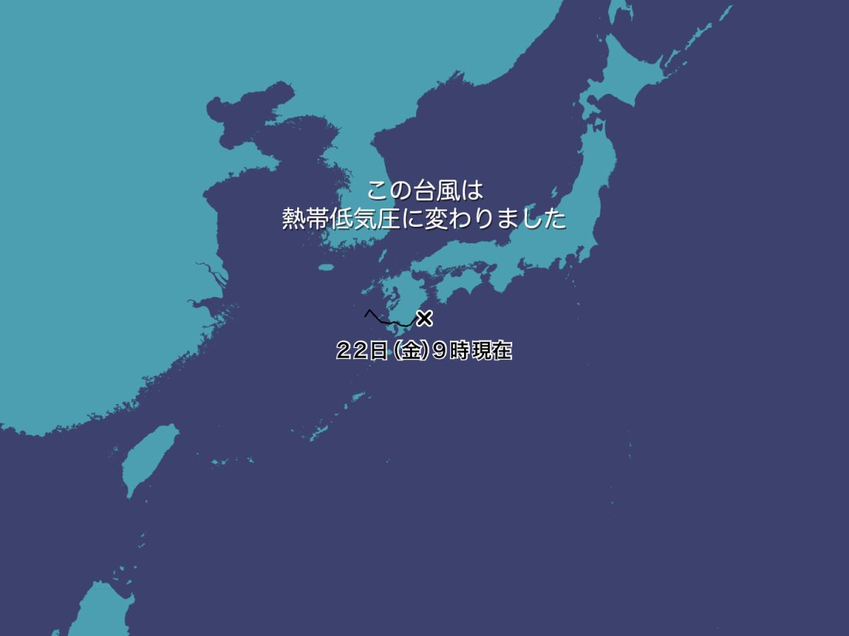 台風12号は、22日(金)9時に日本の南で熱帯低気圧に変わりました。ただ、雨の降りやすい状況は23日(土)にかけて続く見込みです。