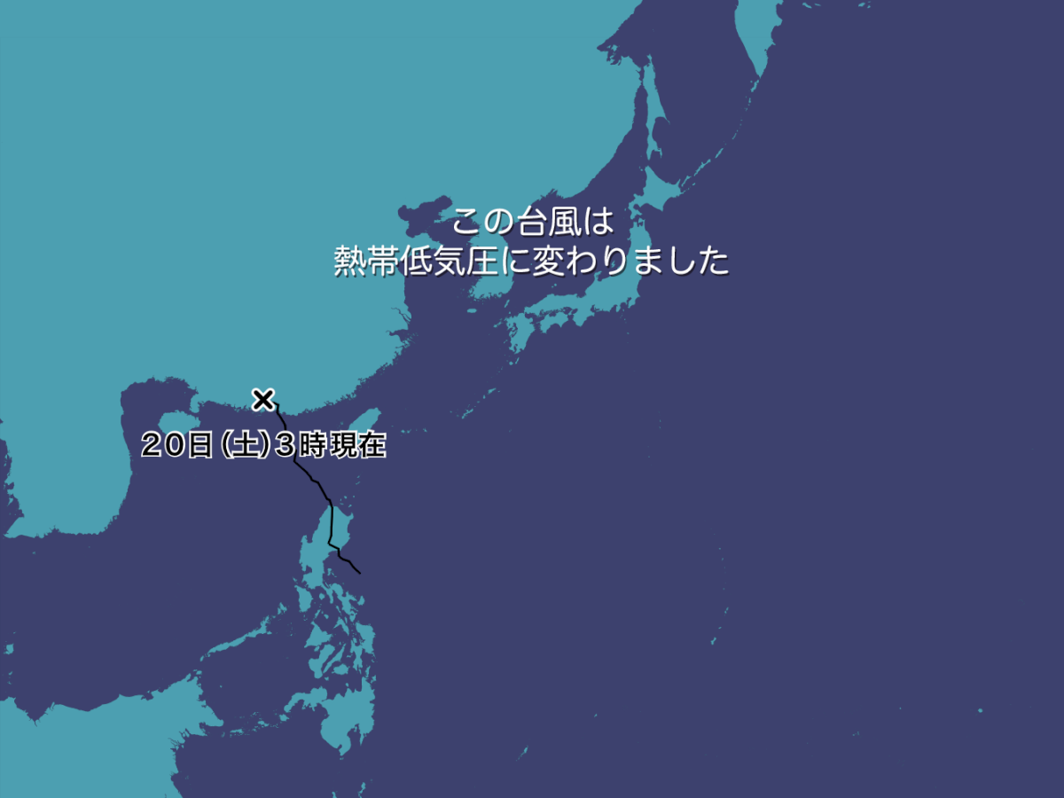 台風17号は、20日(土) 3時に熱帯低気圧に変わりました。※ミートク「(Mitag)」はミクロネシアが提案した名称で、女性の名前が由来です。