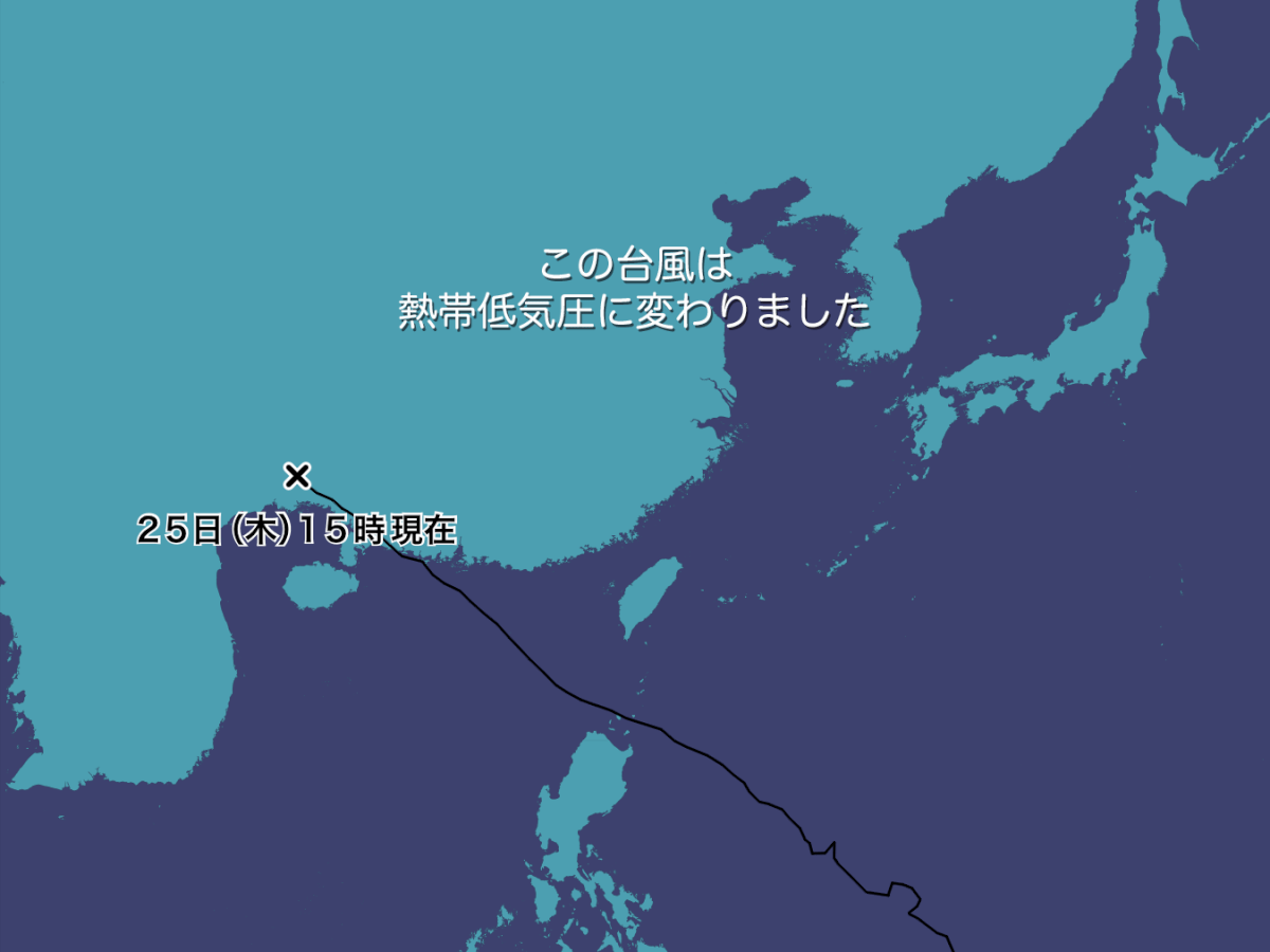 台風18号(ラガサ)は、9月25日(木)15時に中国の華南で熱帯低気圧に変わりました。※「ラガサ(Ragasa)」はフィリピンが提案した名称で、動きを速めることを意味する言葉です。