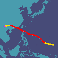 1969年 台風1号 PHYLLIS1969/01/16 21:00〜1969/01/22 21:00