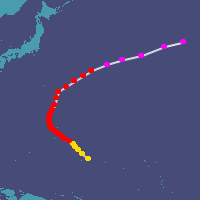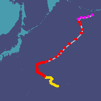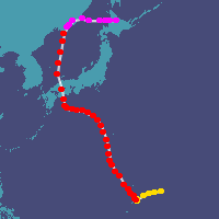 1974年 台風1号 WANDA1974/01/10 09:00〜1974/01/13 21:00