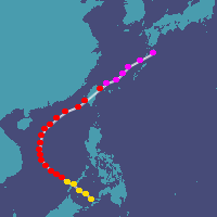 1990年 台風1号 KORYN1990/01/13 15:00〜1990/01/17 09:00