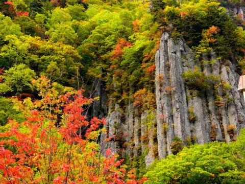 天人峡温泉街から眺める柱状節理と紅葉のコントラストが美しいです。羽衣の滝への遊歩道は5年ぶりに開通し、美しい滝と紅葉を一度に味わうことができます。※天人峡温泉、羽衣の滝周辺に簡易トイレを設置しました。東川町道の駅または遊水公園のトイレもご利用ください。今シーズンは紅葉の進みが早そうです。