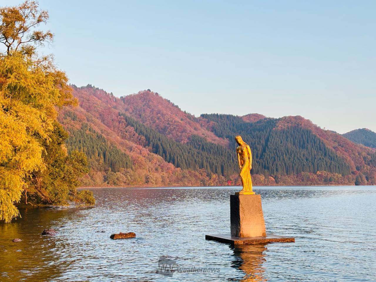 周囲約20kmのほぼ円形の湖で、水深は423.4mで日本一の深さを誇ります。ルリ色の湖面と、たつこ姫伝説に彩られる田沢湖は神秘的な雰囲気をたたえています。