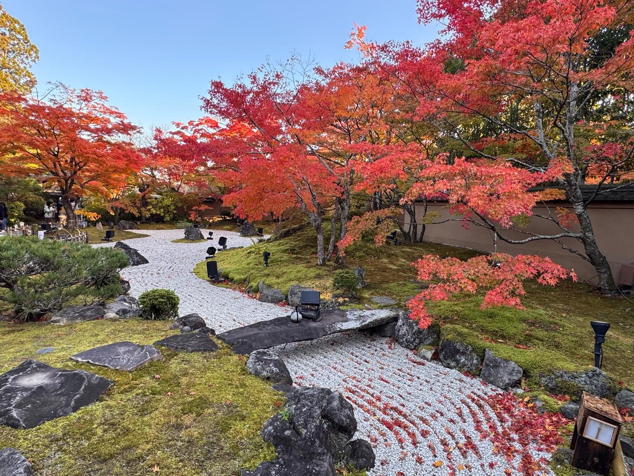 江戸時代の著名な作庭家である小掘遠州作といわれる庭園や松島湾を表した枯山水庭園があり、紅葉と苔の緑が加わり、息をのむような素晴らしさです。また、ライトアップ期間限定で見られる絶景スポットは「心字池」で、地上の紅葉が水面に鏡のように映しだされ、円通院紅葉ライトアップの一番の見所となっております。