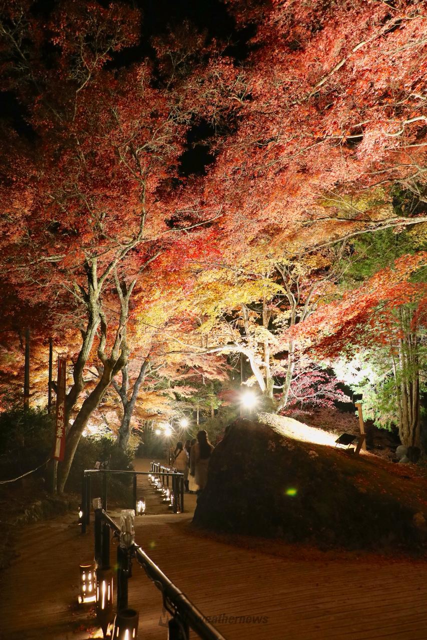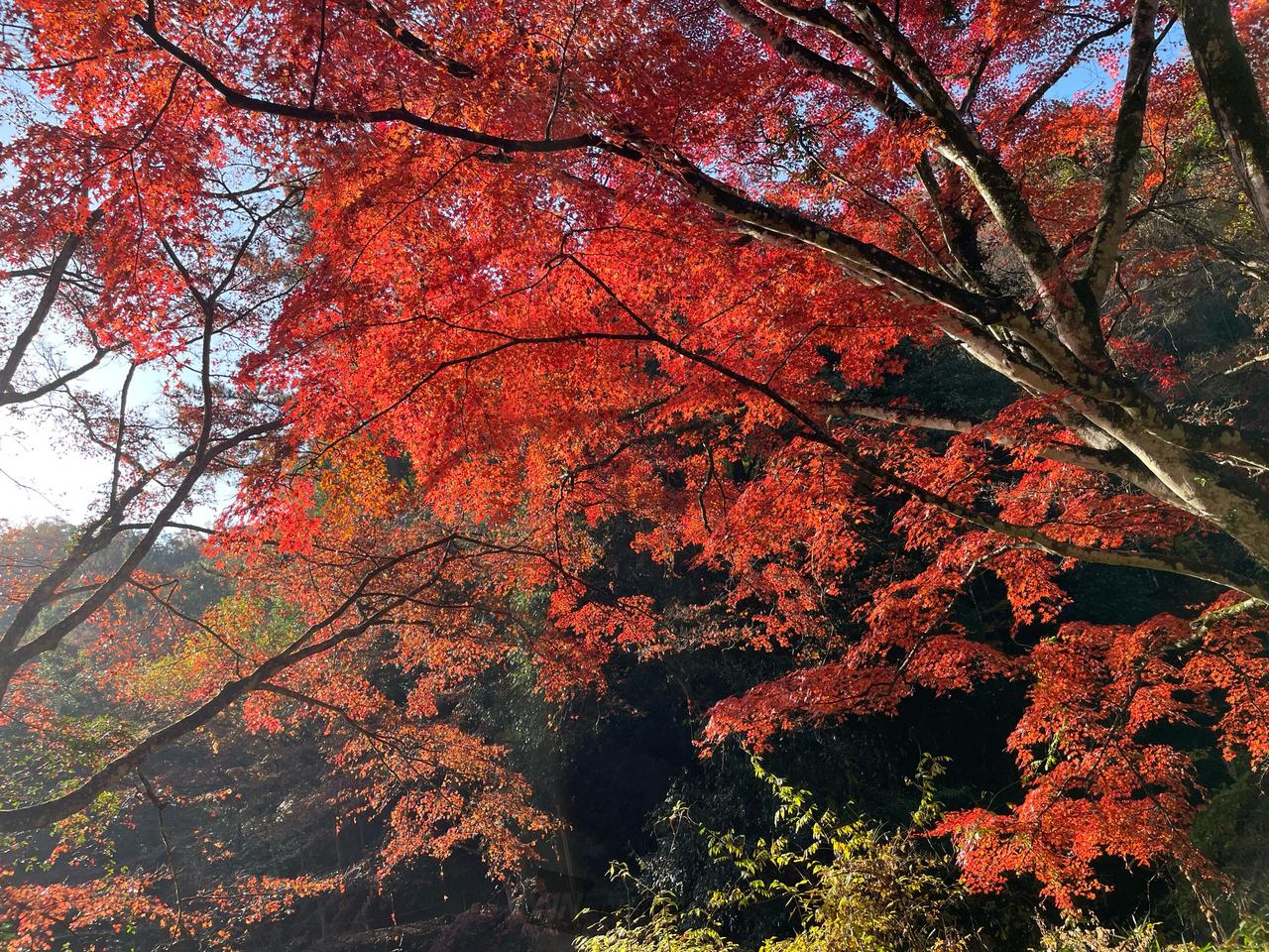静かな渓谷を流れる鳥原川沿いに鮮やかな紅葉がとても綺麗です。景勝地らしい朱塗りの橋との競演は見ものです。晴れていれば、名古屋駅周辺も望める「岩巣山展望台」からの眺望もおすすめです。(展望台へは東海自然歩道を約20分、夕方以降は大変暗く危険です。)