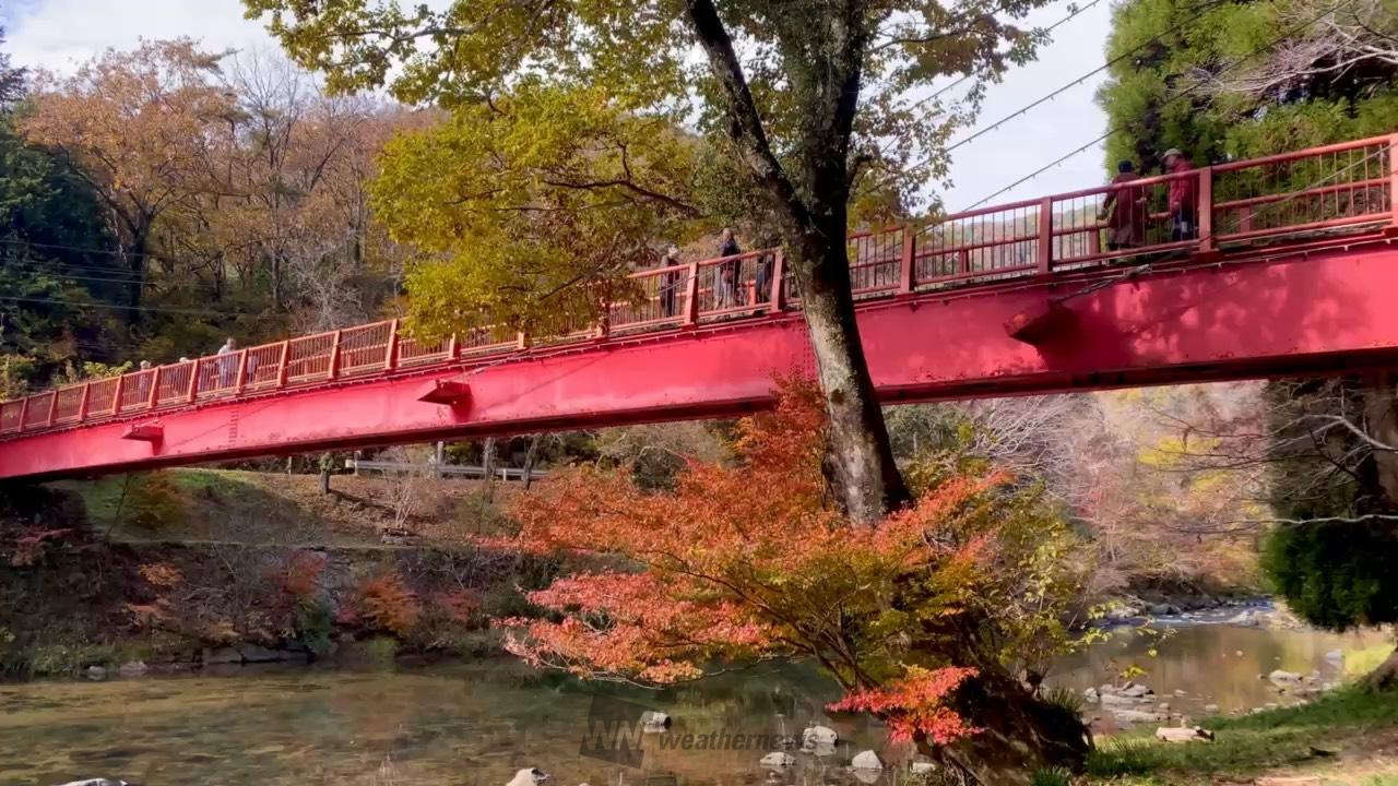 吉備清流県立自然公園に指定されており、そそり立つ巨岩、奇岩にカエデなどの紅葉は絶品です。シンボルの「赤橋」や自然探勝歩道、キャンプ場などもあります。紅葉最盛期には「赤橋」及び紅葉した木々がライトアップされます。