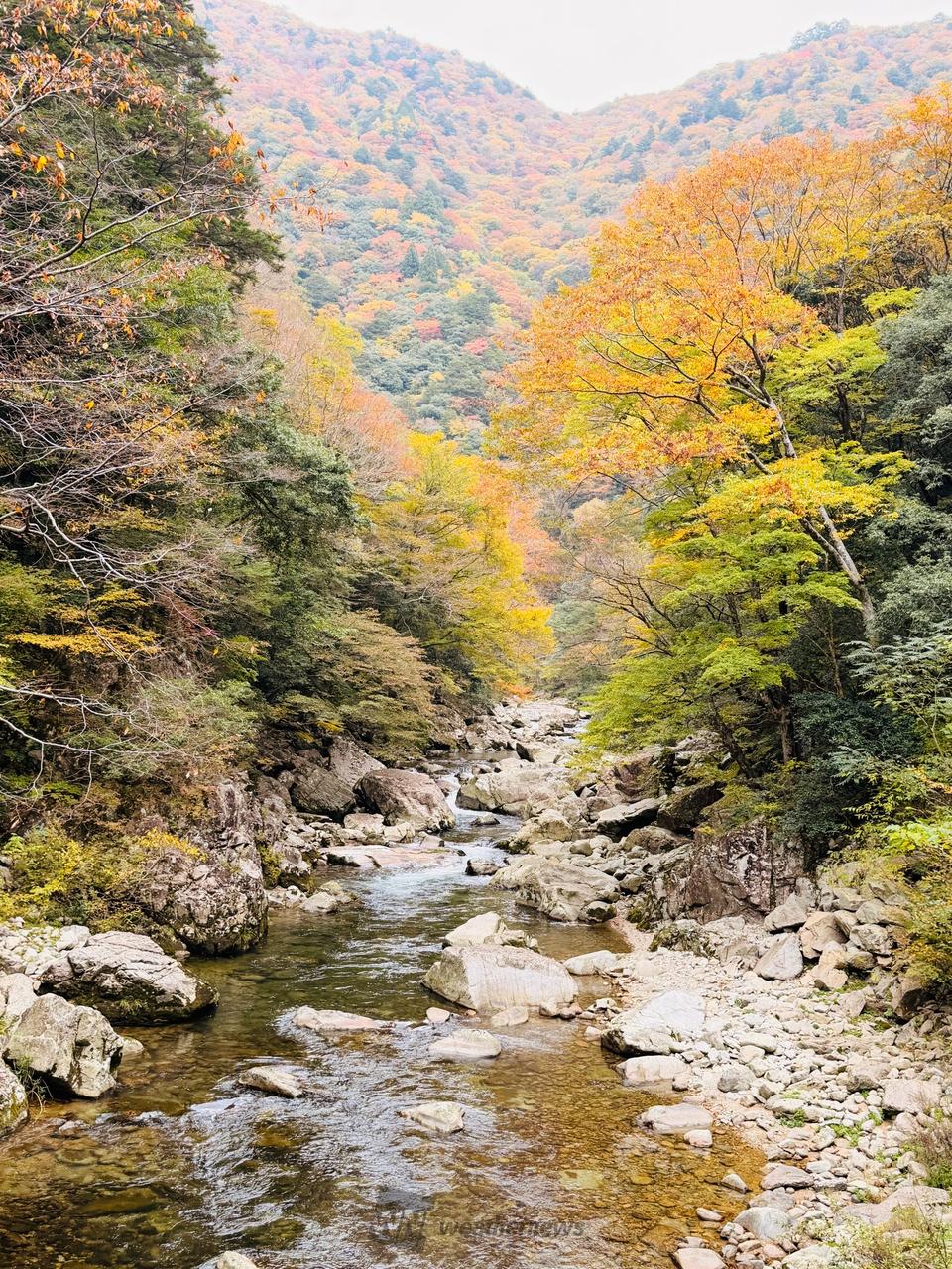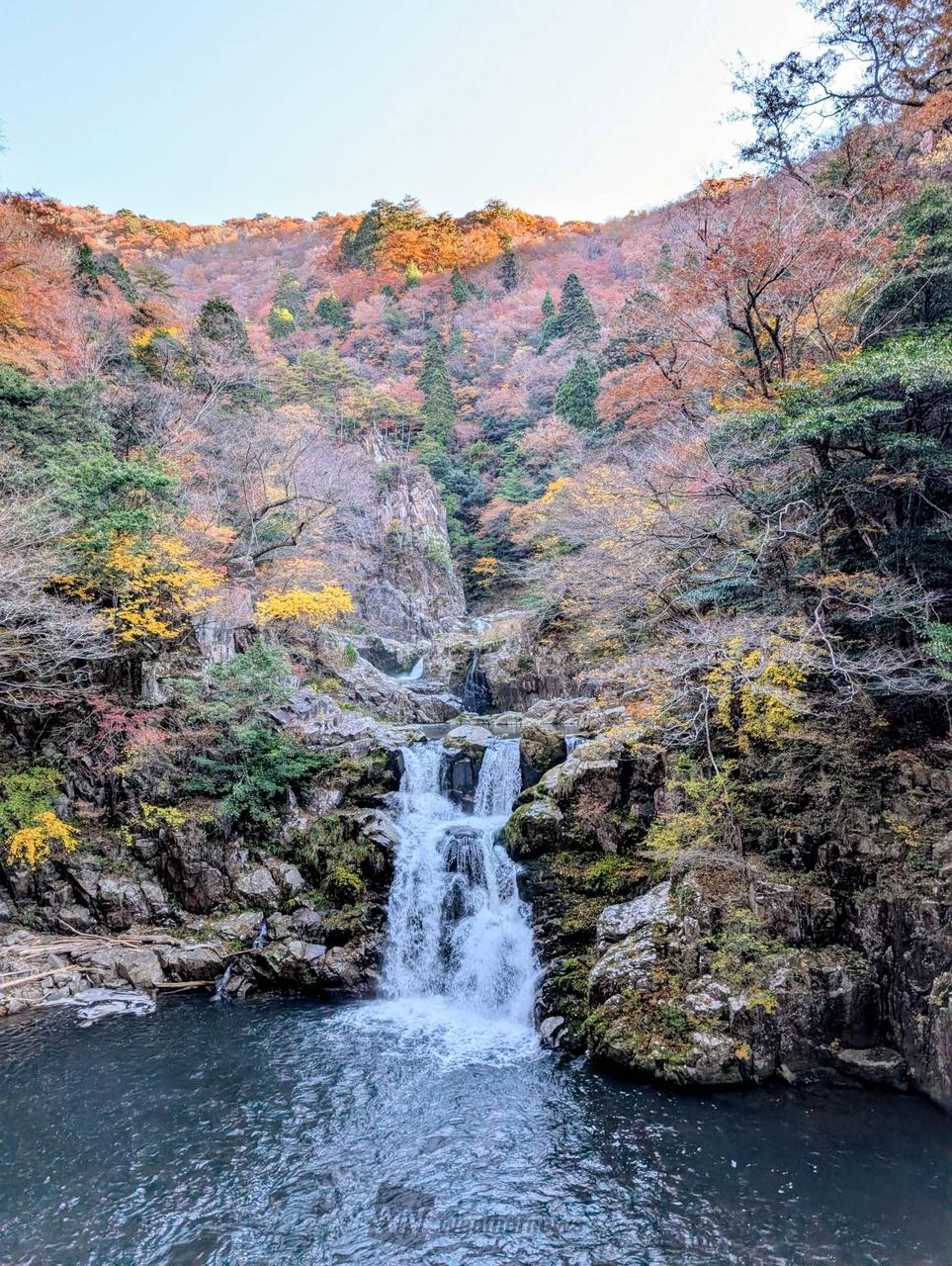 特別名勝・三段峡は太田川の支流、横川川、紫木川沿いの長さ16kmにおよぶ長大な渓谷で、原生林深く刻まれた峡内では、まるで山水画を思わせる風景や滝、淵などが連続しており、それらの景観と紅葉の共演は非常に美しいです。三段峡の中でも上流部になる場所では、三段滝・二段滝・三ツ滝など、滝を中心とした紅葉がオススメです。大雨により峡内遊歩道に一部通行止めが発生しています。