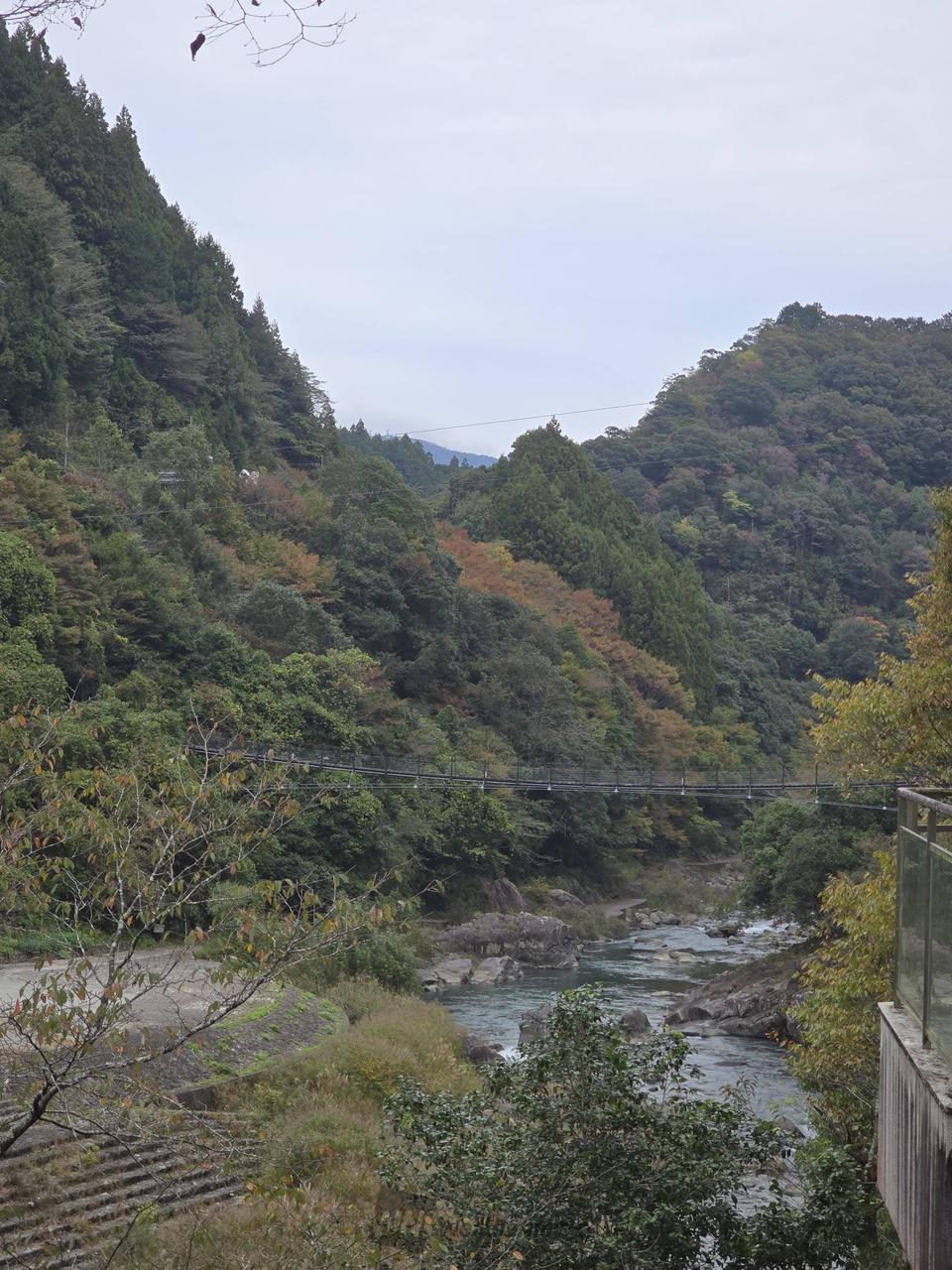 宿の目の前に広がる勝浦川や紅葉を眺めながら弘法大師ゆかりの温泉につかることができます。レストランでは地元食材を使った定食や膳物が景色を見ながら楽しむことができます。10月から咲き続ける十月桜が有名で、秋冬の景色を可憐に彩ります。道ゆく人も思わず立ち止まる美しさです。